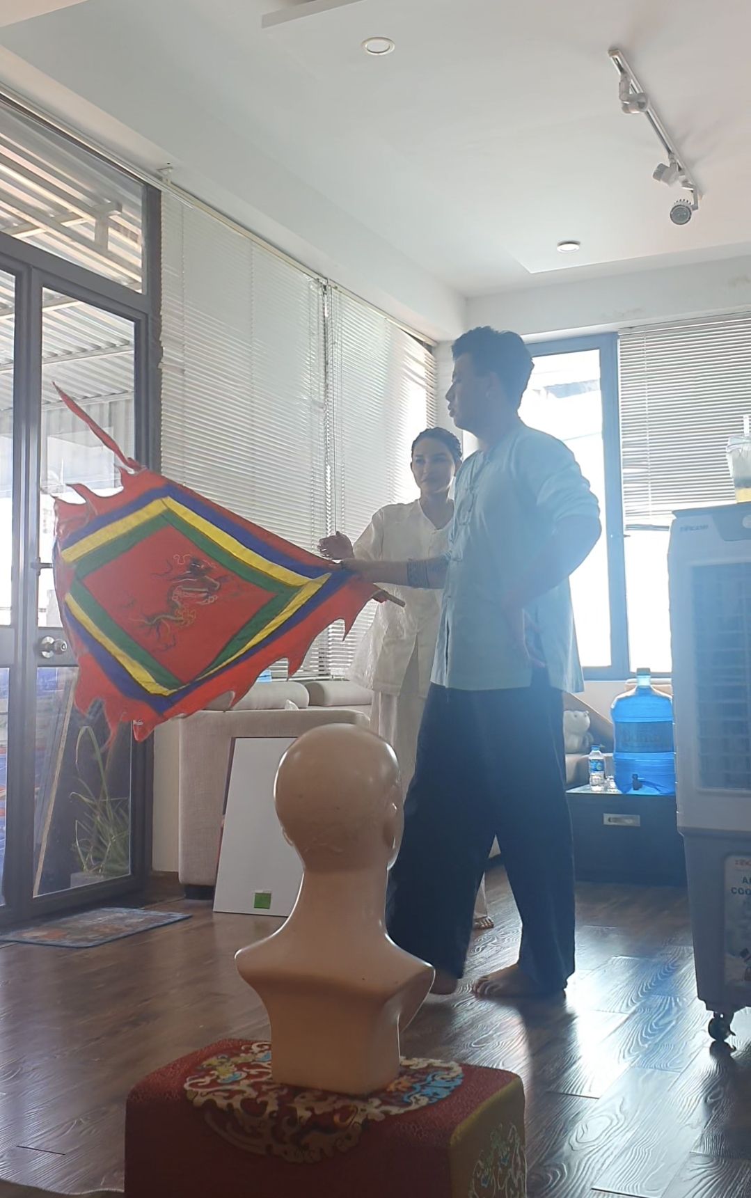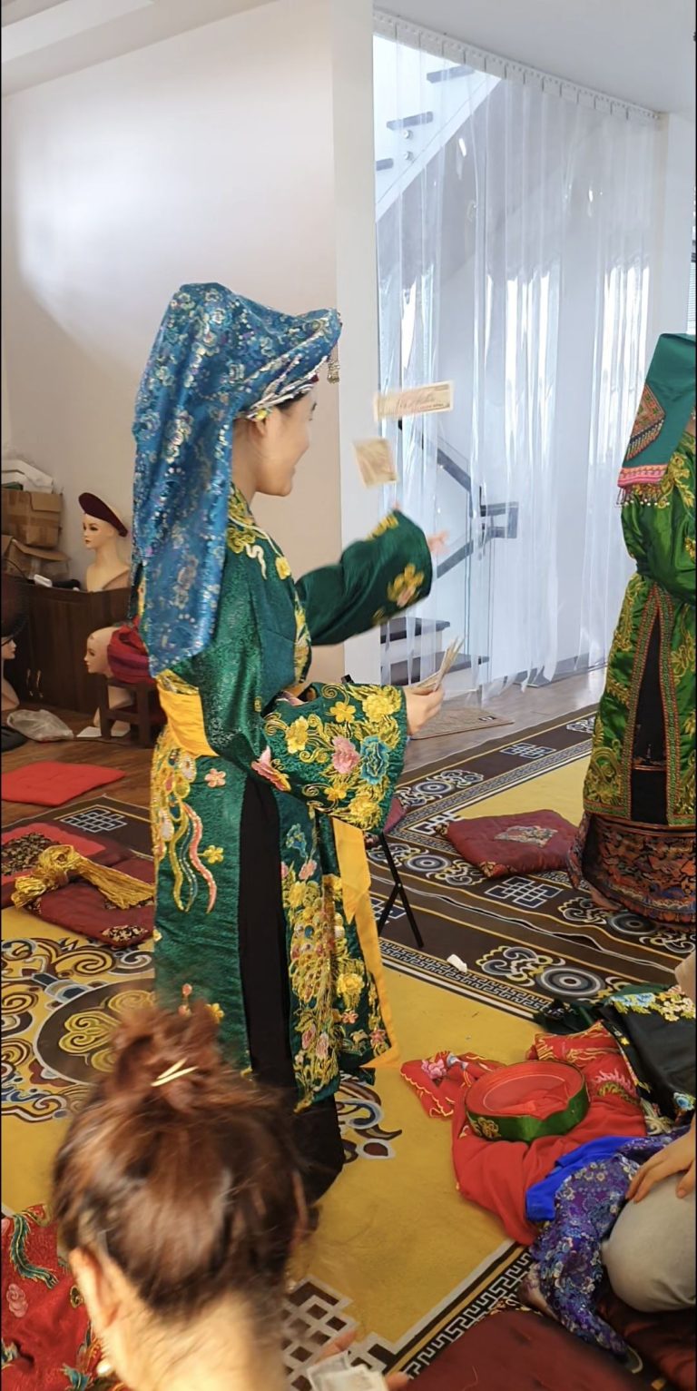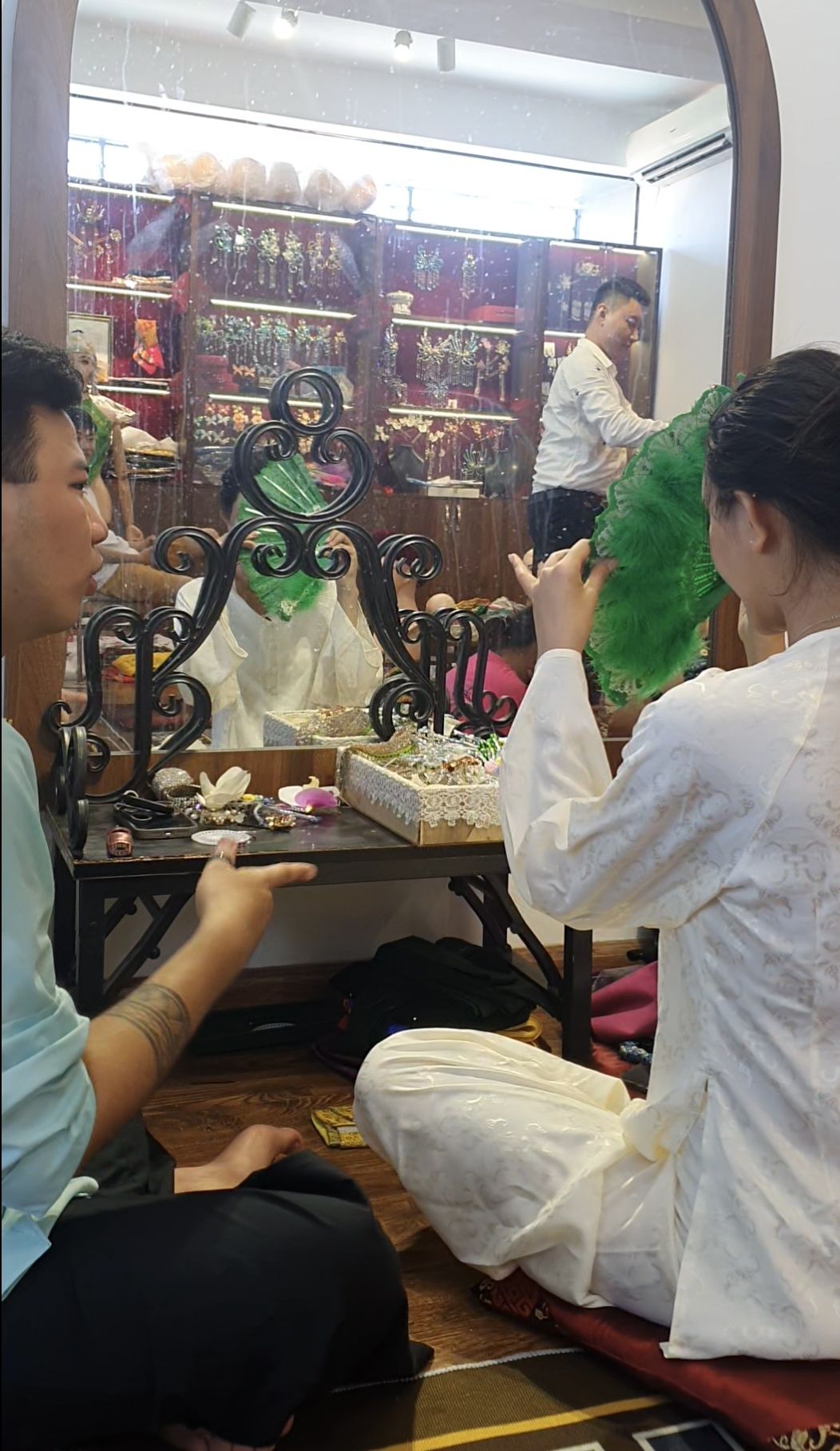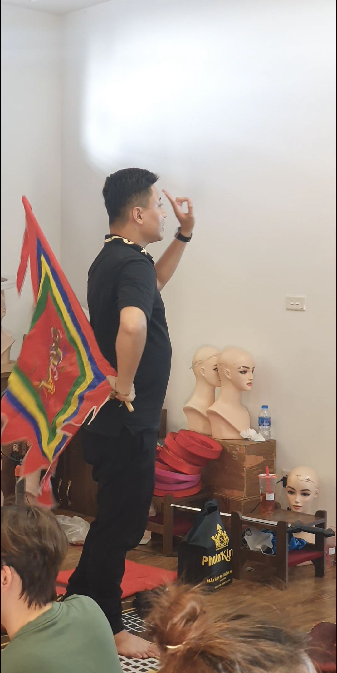 The main hall of Huan Oanh Academy glowed softly under classic stage light. Scarves and fans were laid neatly on the floor, beside swords polished to a mirror shine. As chầu văn melodies hummed from a nearby speaker, five participants stood in quiet anticipation. Zone 4 of the program – Dance & Gesture – was about to begin.